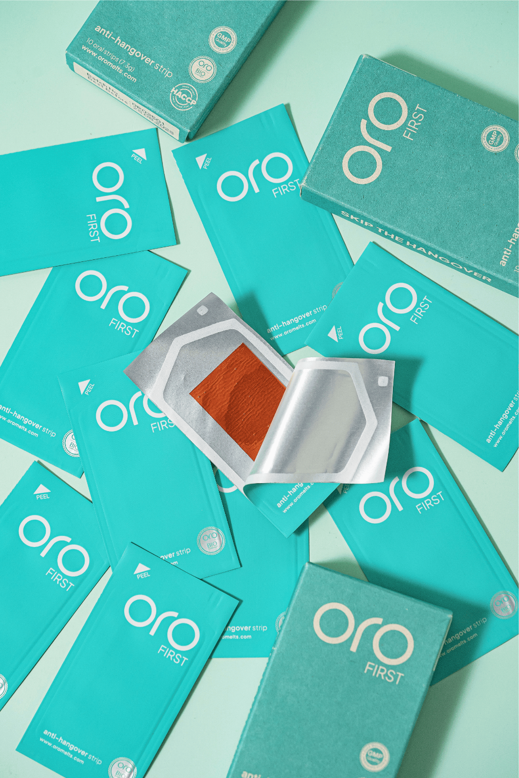 Fast acting, melt in your mouth strips. Before your drink, ORO FIRST.