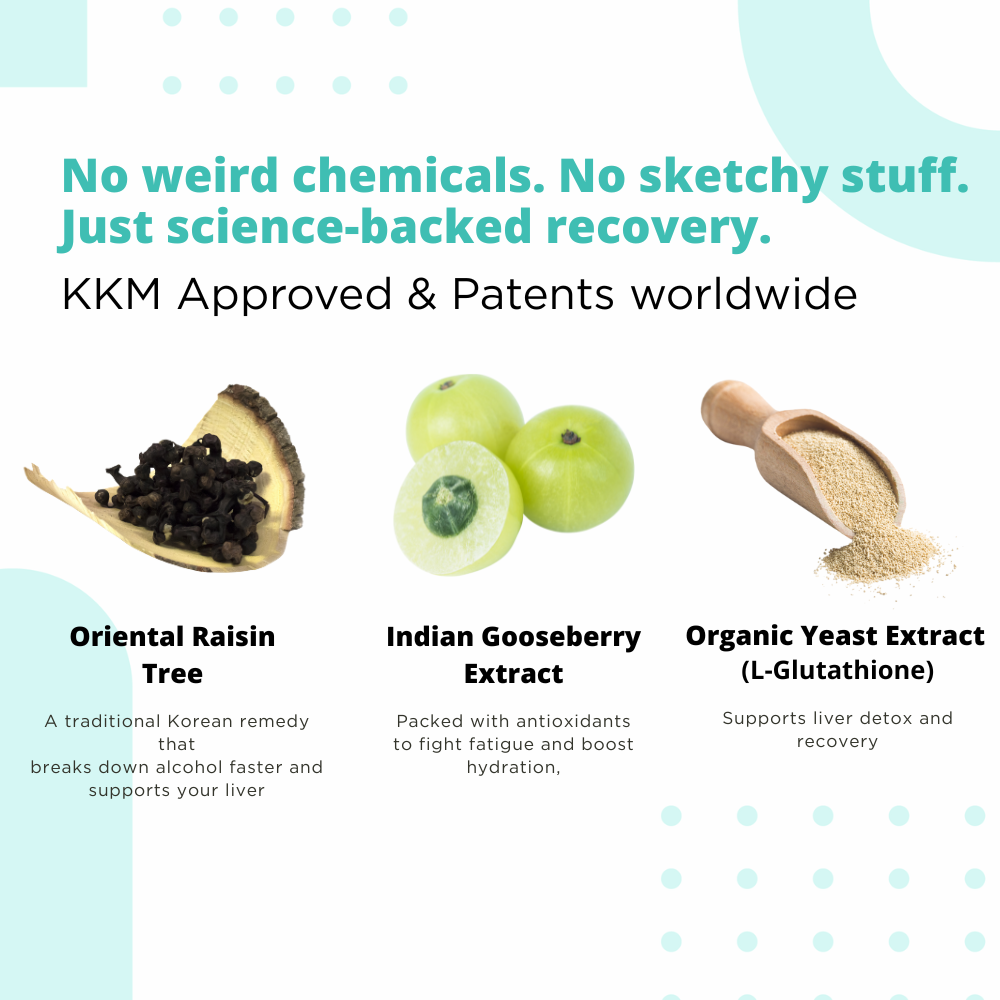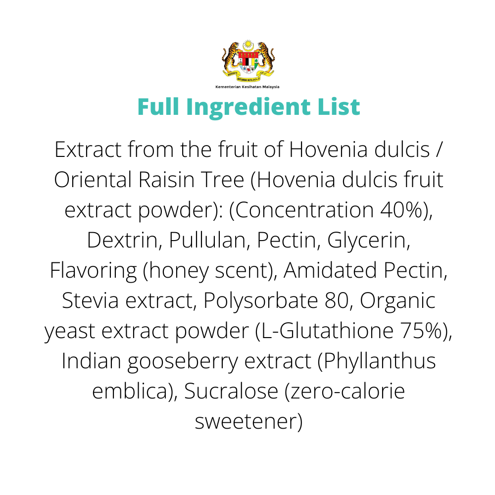 - Hovenia Dulcis Extract (Oriental Raisin Tree) – supports alcohol metabolism